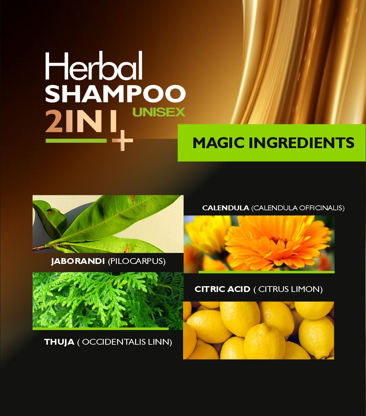 Key Ingredients: Arnica (Mountain Daisy), Jaborandi (Pilocarpus), Thuja (Thuja Occidentalis Linn), Calendula, Sodium Lauryl Ether Sulphate, Coco Diethanolamide, Sodium Hydroxide, Citric Acid, Propylene Glycol Monostearate, Purified Water, Perfume (Fragrance).